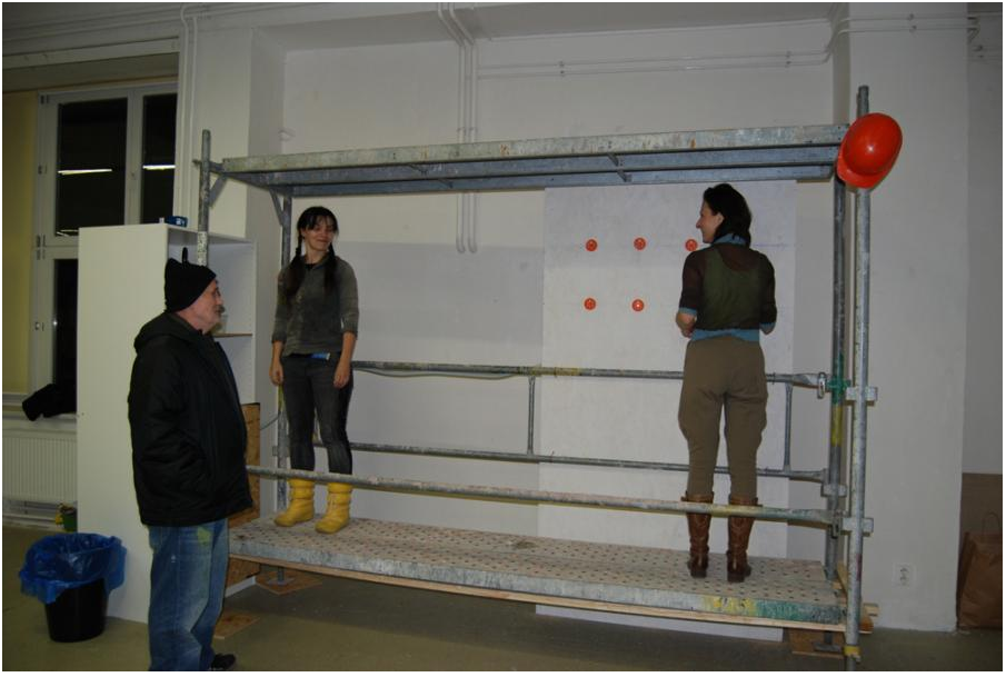 An interactive installation made of pieces of scaffolds in which people in the gallery had to work together. Inspired by workers on the scaffold. Workers must trust each other in order to work effectively.