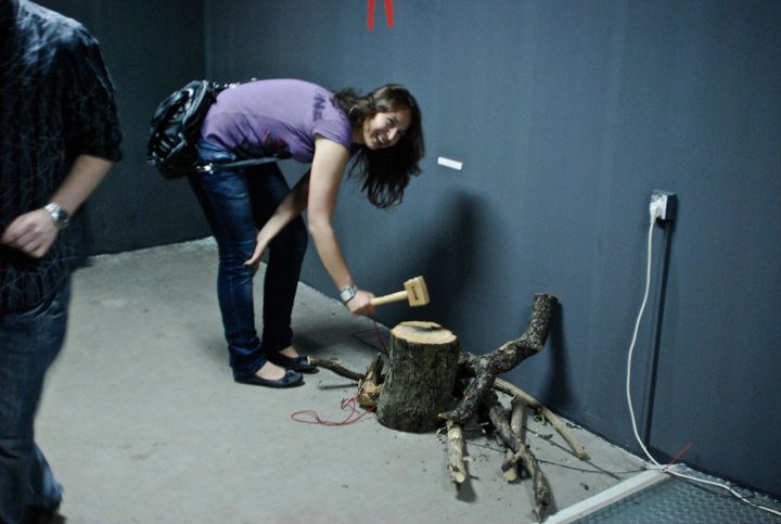 On one side of the installation somebody had to chip with the hammer and on the other side somebody could draft beer (which is the best reward for builders). Finally in a gallery space, people start to interact with each other, sharing opinions, experiencing it together.