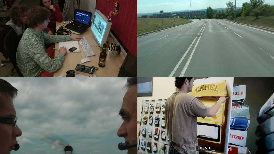 I picked out four professions which seem passive from an outside perspective, from outside but the workers have to deal with many important decisions daily. For example: a bus driver in the public transportation, has to deal with messy crossroads every day, putting in all the concentration and energy he has in order to avoid accident, while he may be perceived as the one spending whole day just “siting on his ass”. Therefore I installed 2 cameras in the workspace of the “passive workers”, one of which faced the road and recorded the route, while the other recorded the driver himself