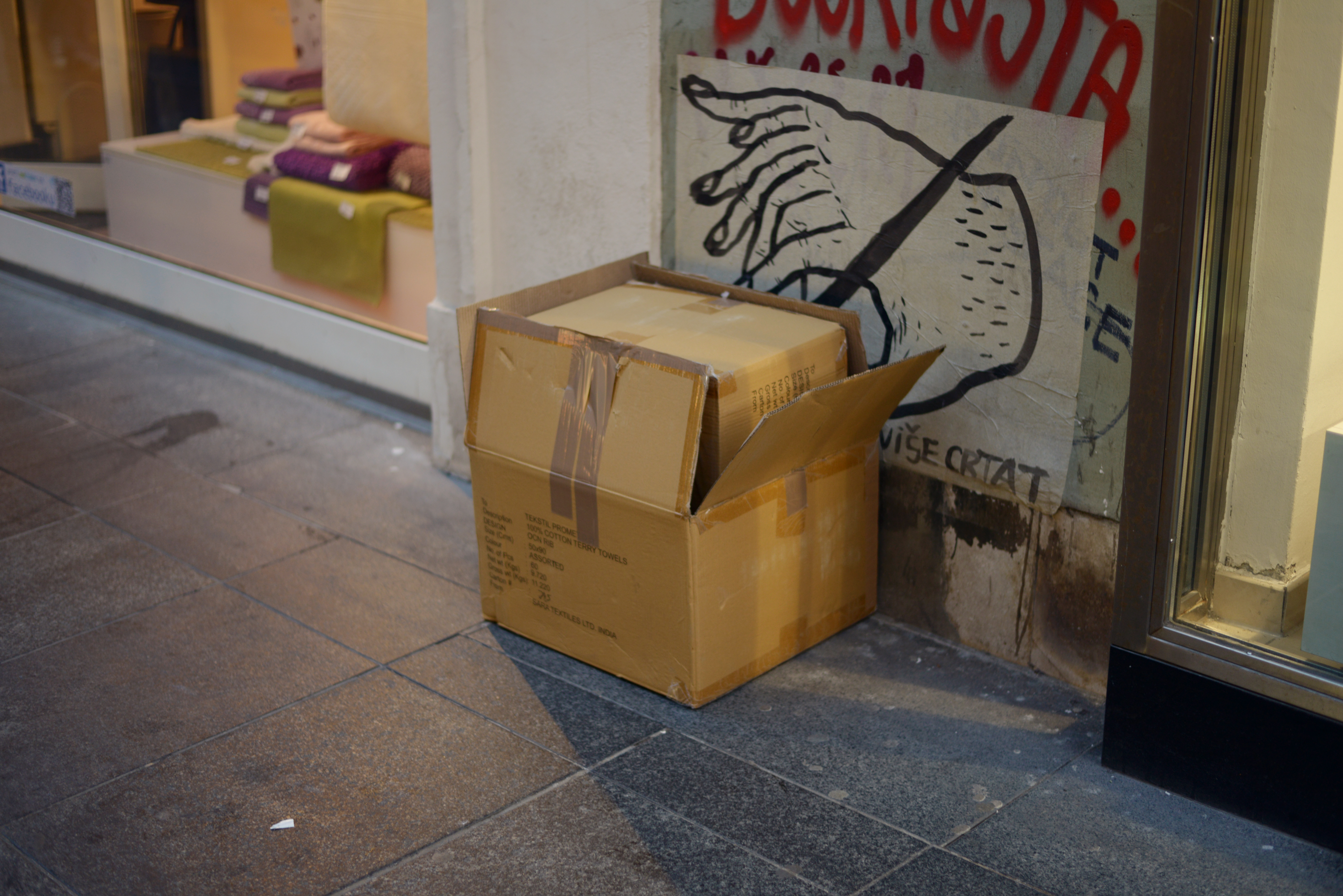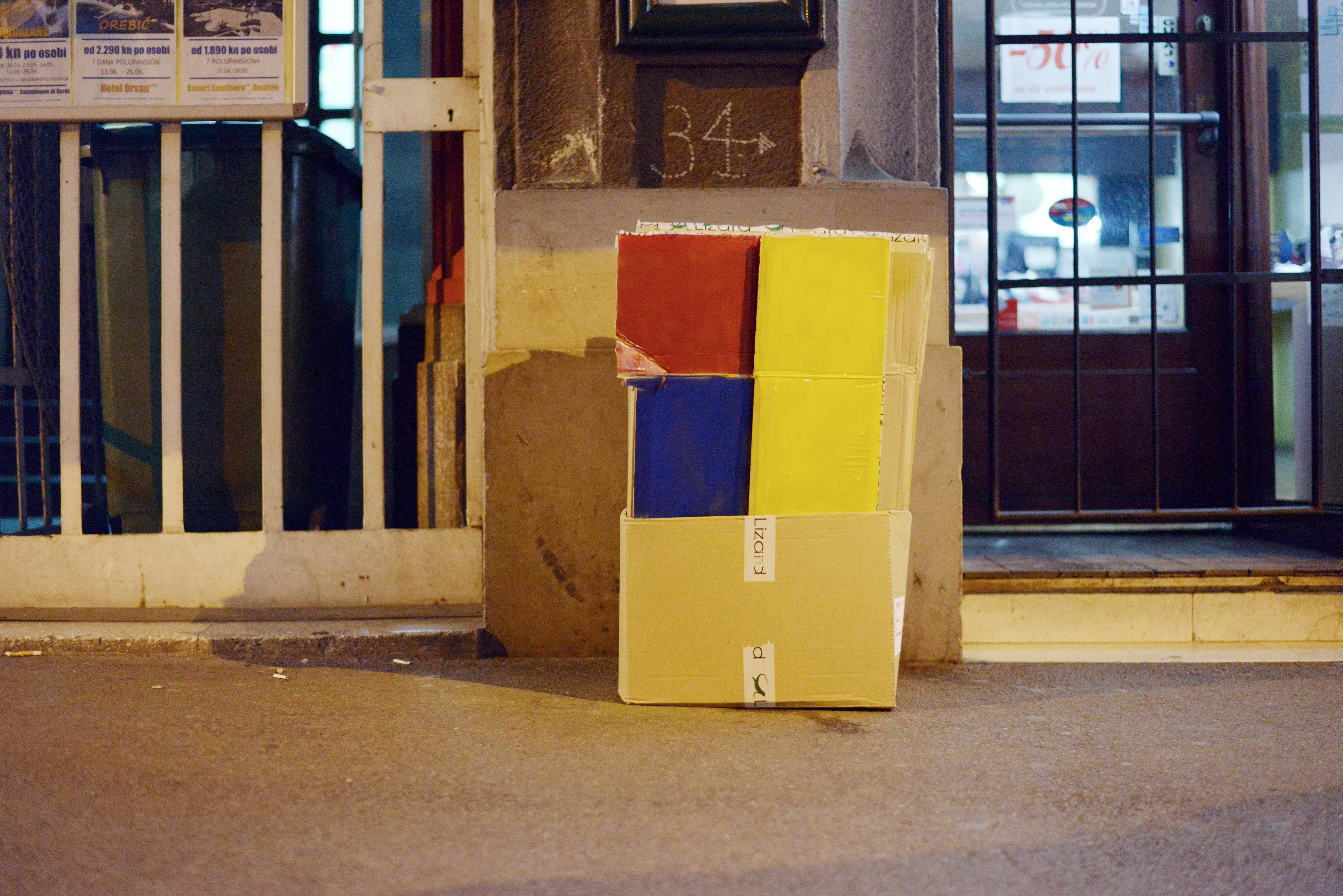 Participatory art project, focused on specifics of street art, based on specific characteristic of city of Zagreb – putting carton boxes out at night for garbage men.