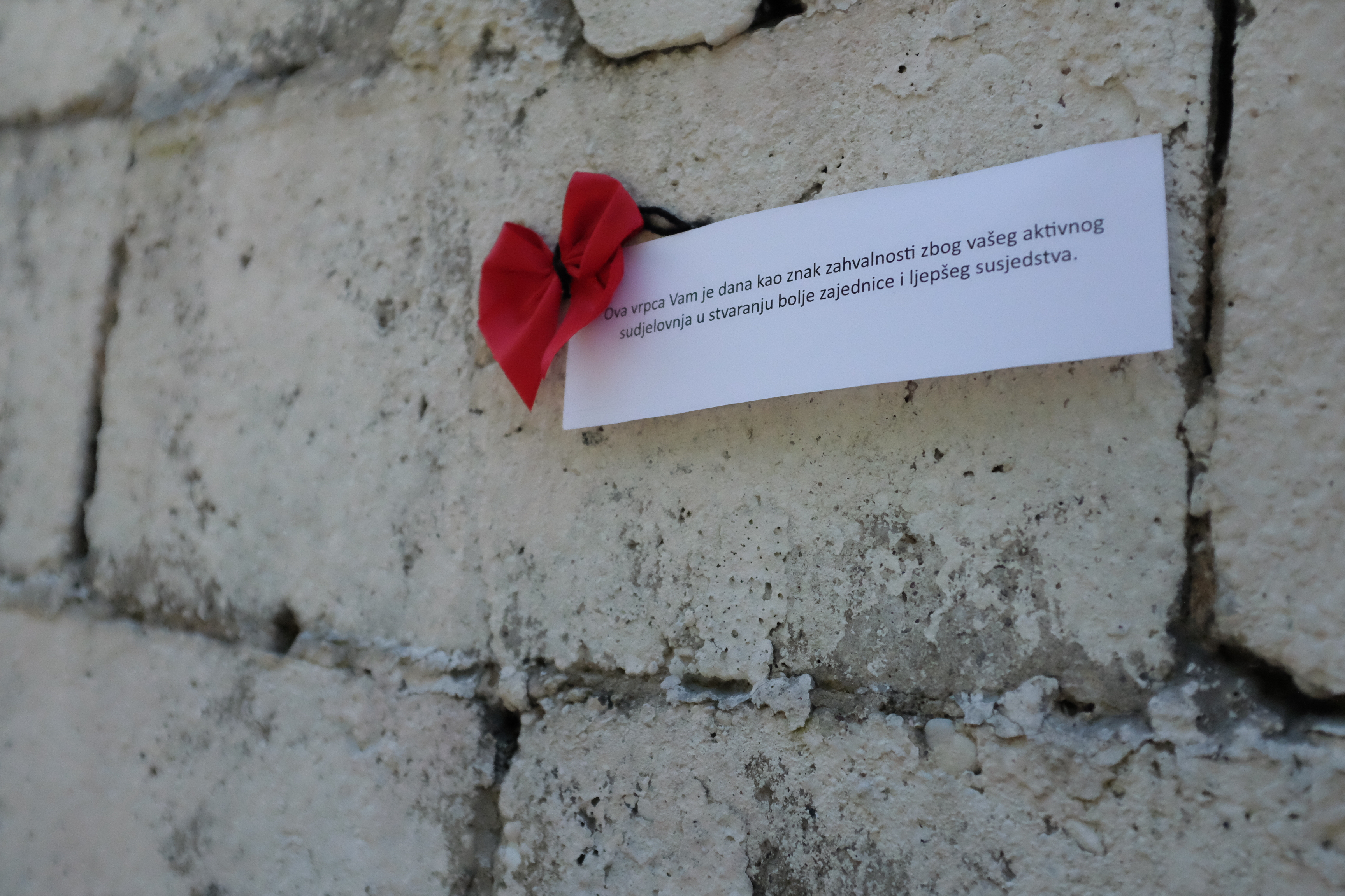 Project is focused on things and places done by inhabitants of one part of Zagreb by “do it yourself” method. Novi Zagreb is very specific zone and people living in New Zagreb are very creative and independent. There is a mixture of village and big city atmosphere, older people with young families, which can be recognized in participatory behavior. People are not waiting for government if they need something. They are taking public spaces, as they are their gardens and they are building things they need, themselves. Which is improving community experience. That’s why we decided to give those people “Ribbon of Appreciation” (“Vrpca Pažnje in Croatian). By this Ribbon of Appreciation we would like to show our gratitude for the purpose of well-being of the community and the surrounding neighborhood.